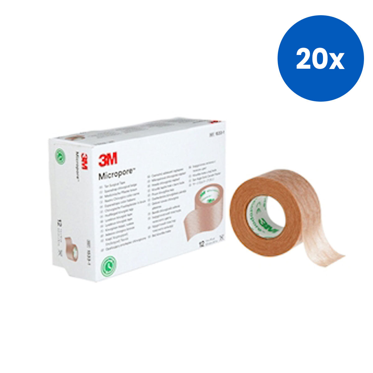 3M Micropore Surgical Paper Tape Latex Free 25mm x 9.1 metres Biodegradable 12 Pieces/Box - Tan x20