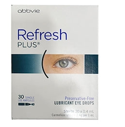Abbvie Refresh Plus® Eye Drops offer soothing, preservative-free relief for individuals experiencing dry, irritated, or fatigued eyes due to environmental exposure, extended screen time, or post-operative care. Each 0.4mL unit-dose vial is sterile and designed for single use, ensuring maximum hygiene and safety. Formulated with 5mg of Carmellose Sodium, the drops replicate natural tears to provide long-lasting hydration and comfort while helping restore moisture balance to the eye surface. Ideal for sensitive eyes or those recovering from LASIK procedures, the lightweight formula delivers instant refreshment without causing stinging or blurred vision.
