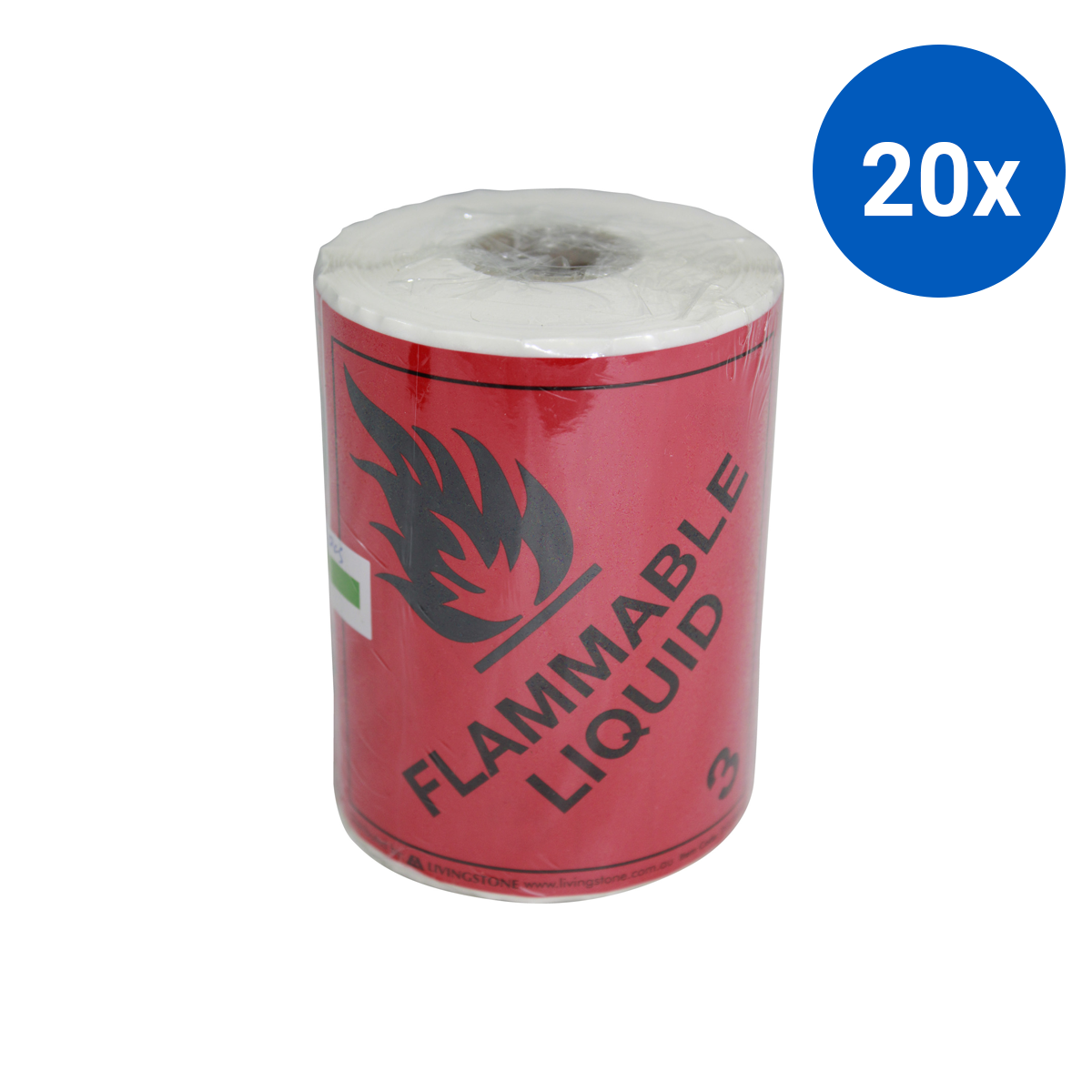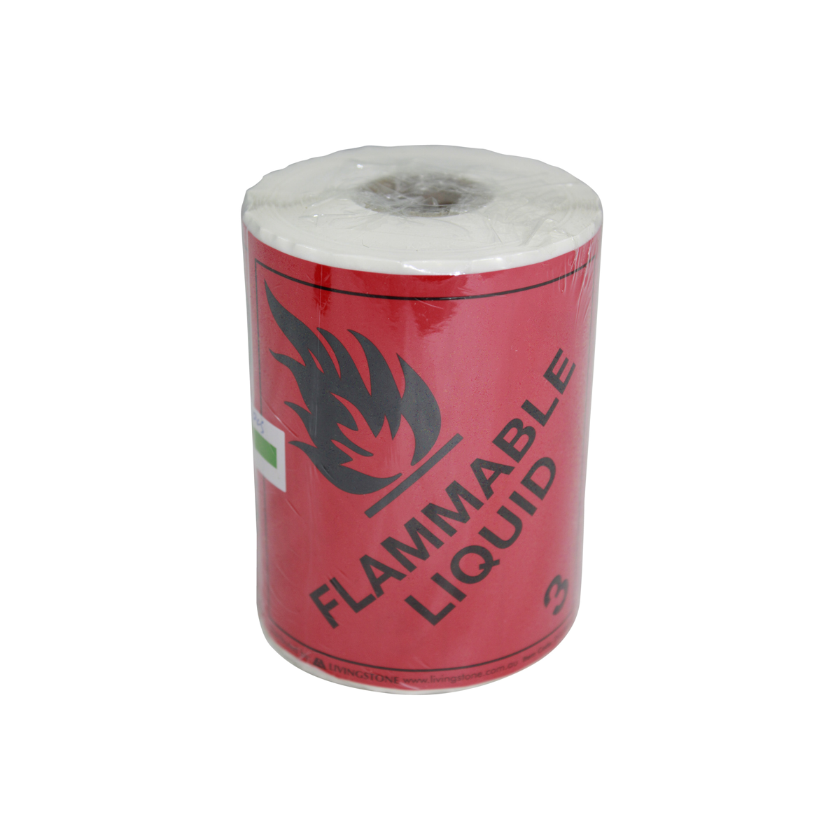 Adhesive Labels Printed "Flammable Liquid 3" 10 x 10cm 250/Roll - Black Words on Red x20