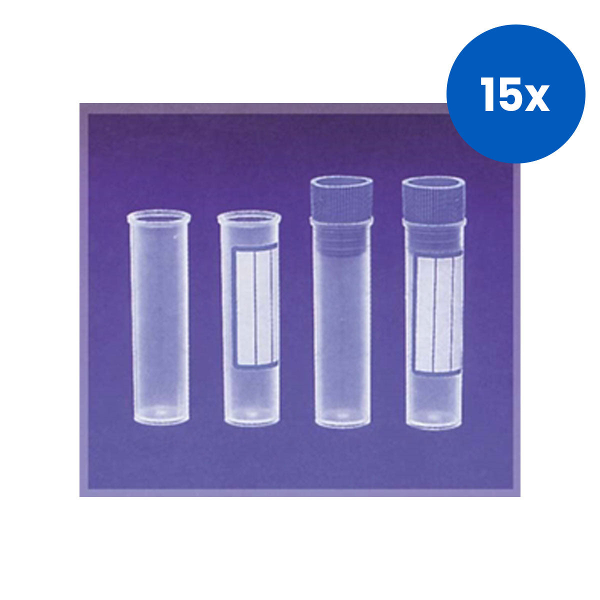 Aptaca Cylindrical Test Tube 5ml 16 x 50mm Flat Bottom Recyclable Polypropylene with Cap 250/Bag - Clear x15