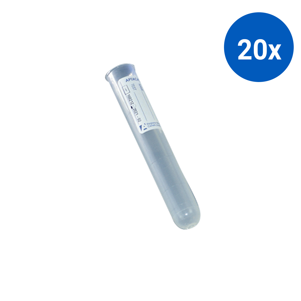 Aptaca Cylindrical Test Tubes with Label 10ml 16mm x 100mm Graduated with Rim Polypropylene 250/Bag - Clear x20
