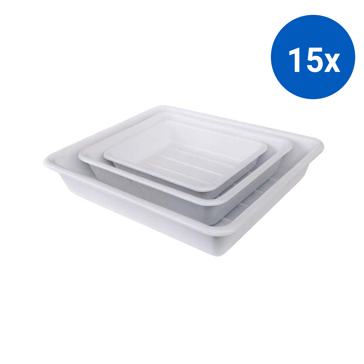 Aptaca Deep Trays 3 Litres Approx Ext: 305(L) x 250(W) x 60(H) mm Int: 250(L) x 200(W) x 60(H) mm Stackable PVC - White x15