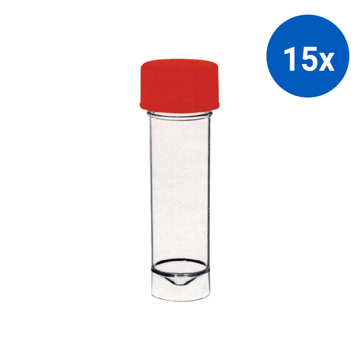 Aptaca Specimen Container with Red Screw Cap 25mL 25x90mm Unlabelled Sterile Polystyrene 100/Bag - Clear x15