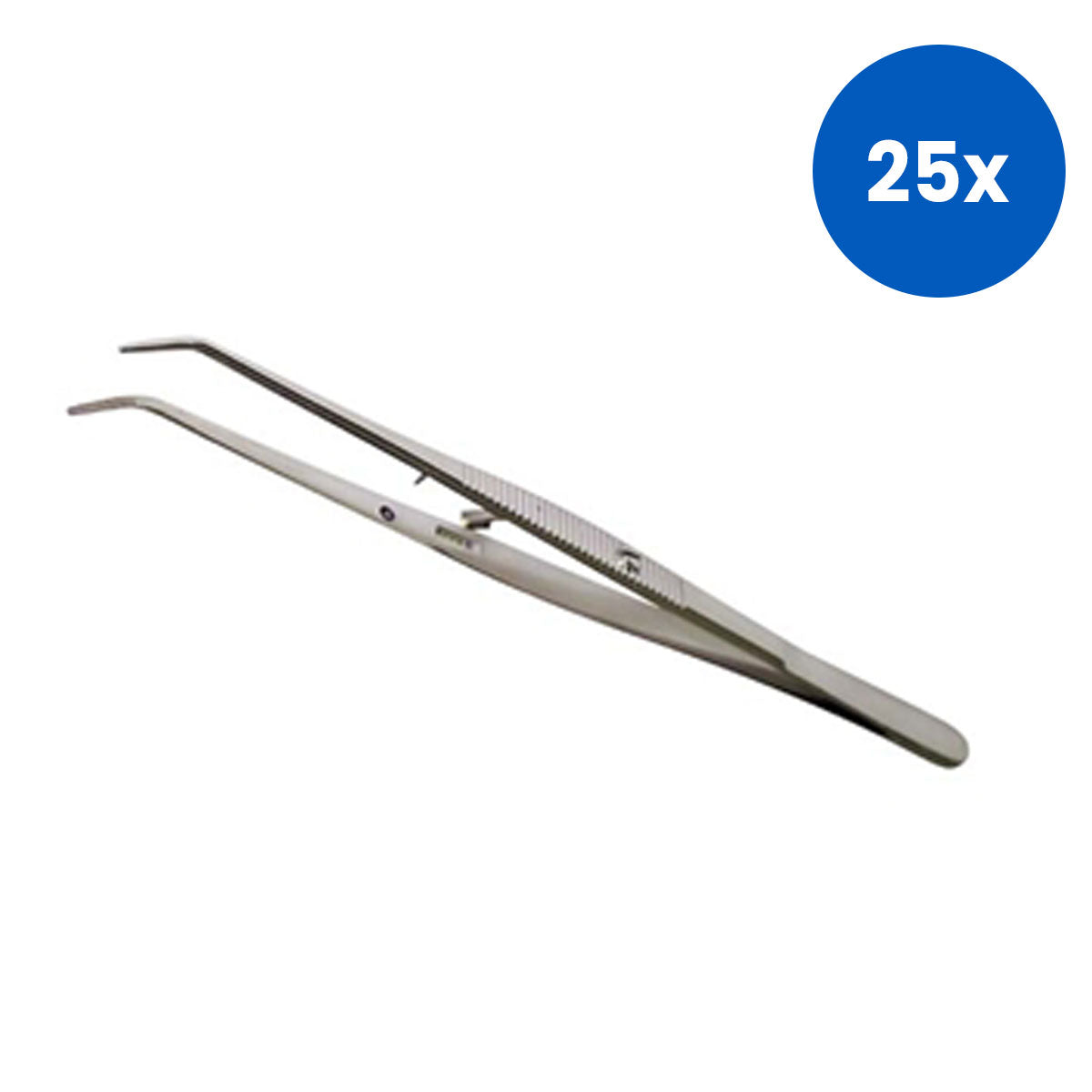 Asa Dental College Locking Tweezer Forceps 15cm Angled with Pin and Lock Serrated Stainless Steel - Silver x25