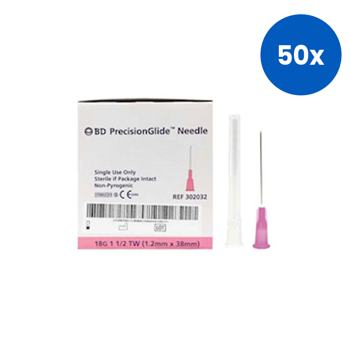 BD Hypodermic Needle 18 Gauge x 1.5 Inches Precision Glide 100 Pieces/Box - Pink x50