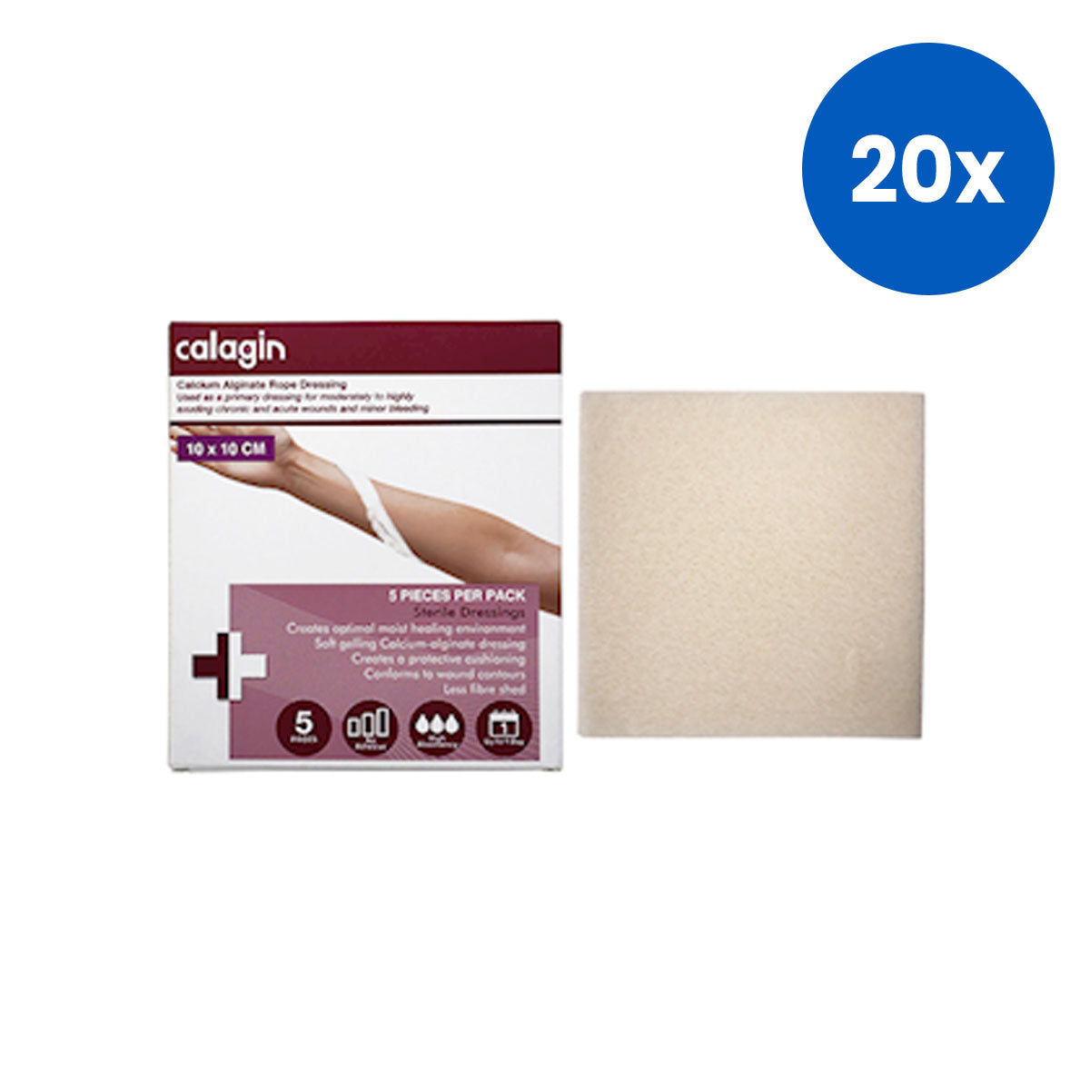 Calagin Calcium Alginate Dressing Non-Adherent 10cm x 10cm 5 Pieces/Pack - White x20