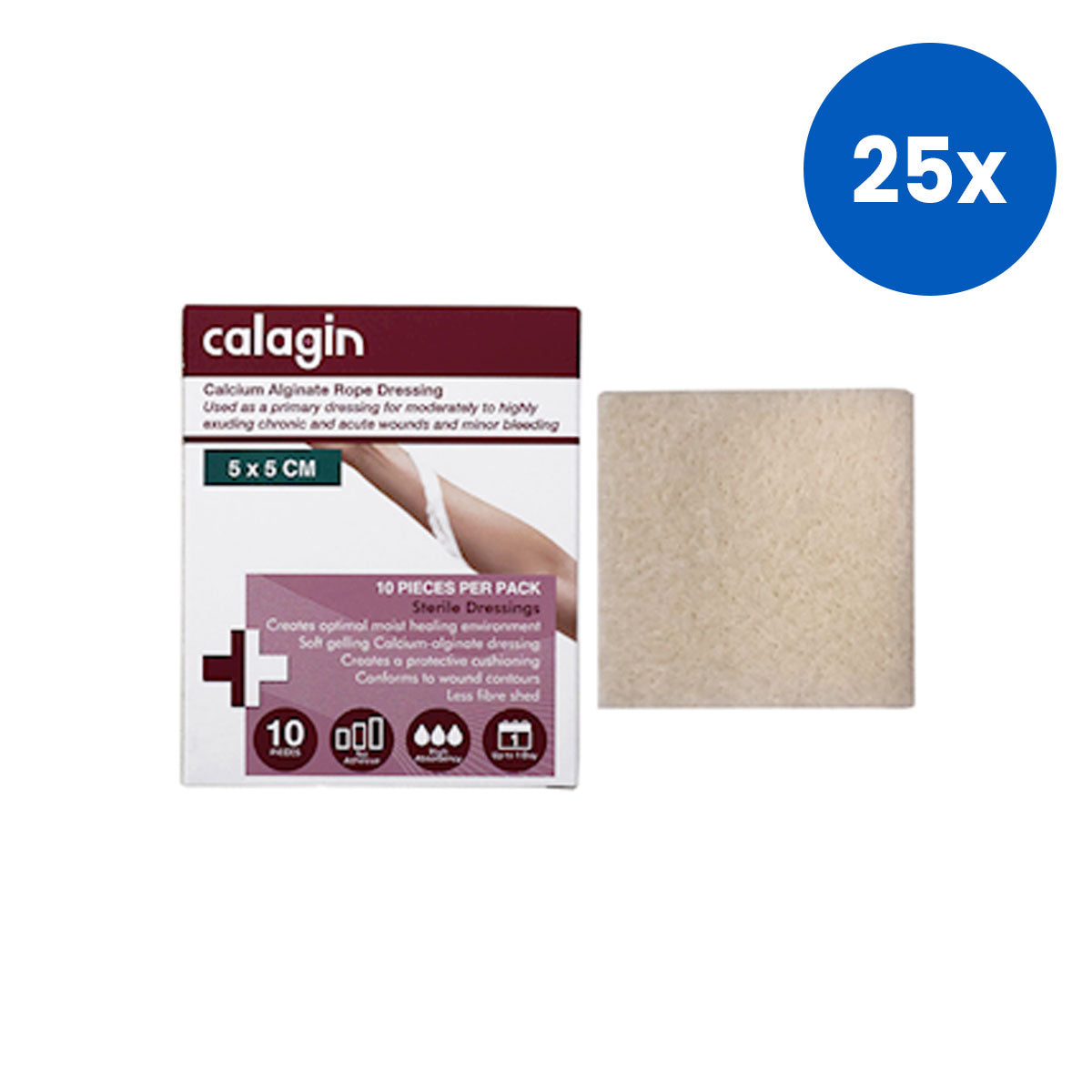 Calagin Calcium Alginate Dressing Non-Adherent 5cm x 5 cm 10 Pieces/Box - White x25