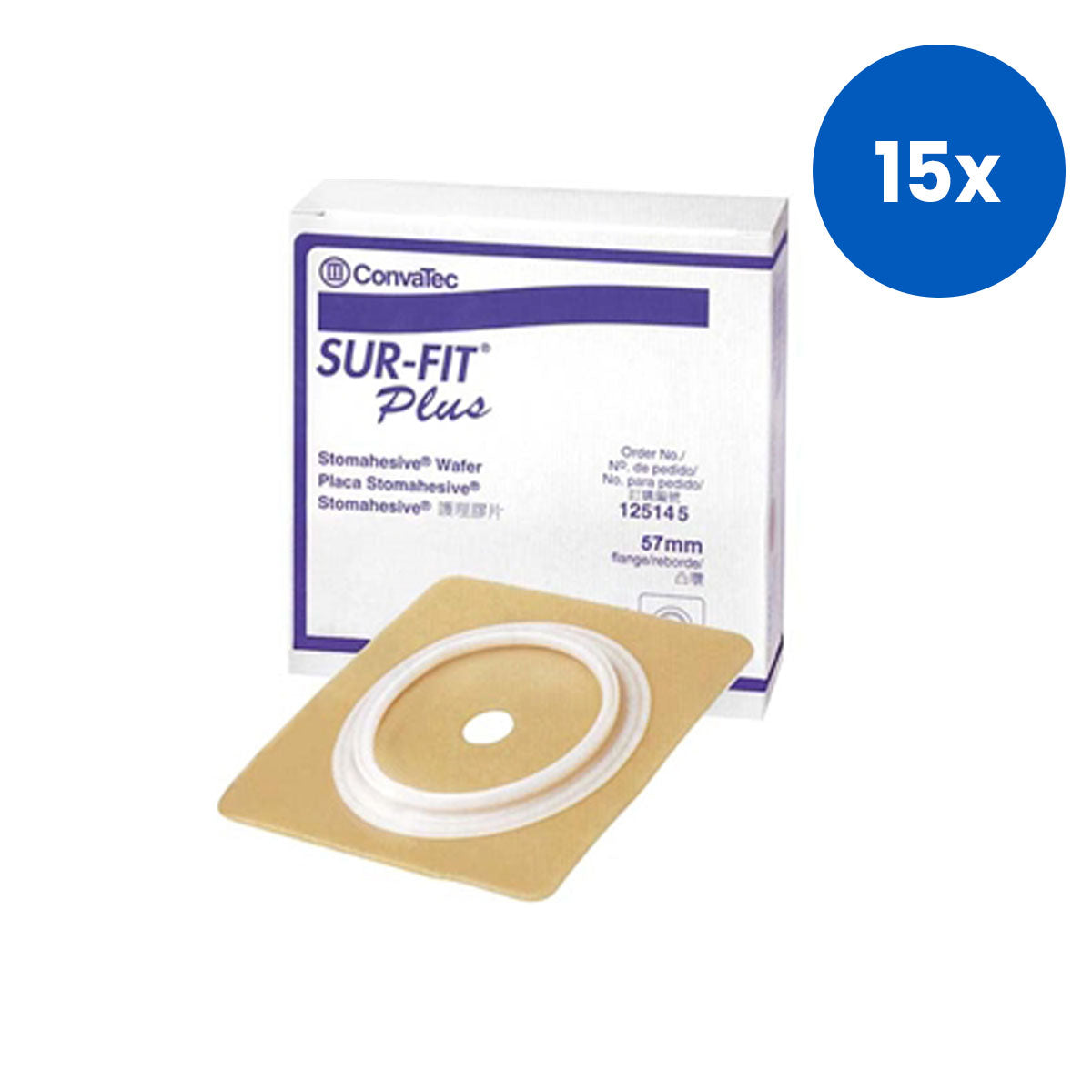 ConvaTec Sur-fit Plus Two-Piece Stomahesive Wafer 57mm Full Stomahesive Skin Barrier 5/Box - White x15