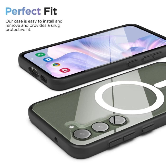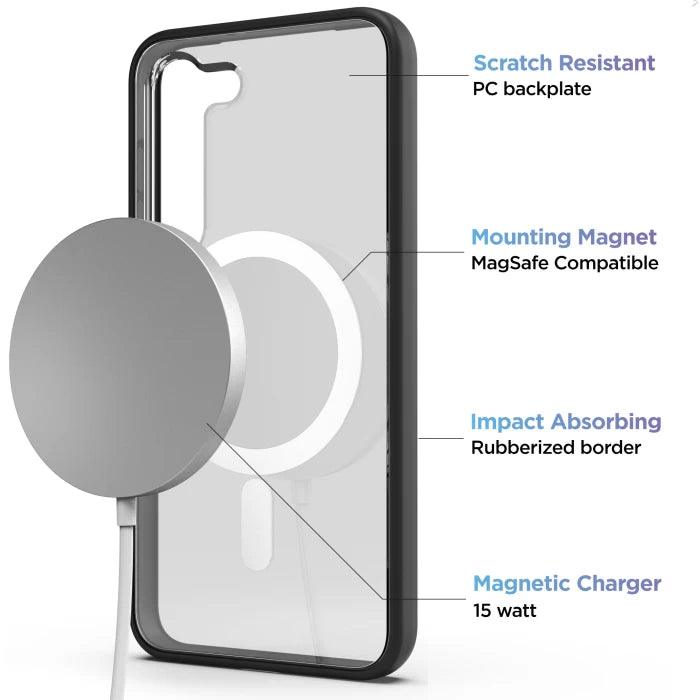 A premium case, crafted with attention to detail. Encased Clear MagSafe Case Samsung Galaxy S23+ Plus with Portable MagSafe Charger - Black brings together the best of both worlds with serious drop protection wrapped in a sleek premium design. The case provides high quality reliable protection and is designed with a reinforced frame and lining to withstand both impact and abrasion.
