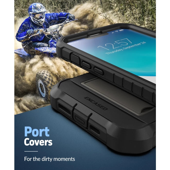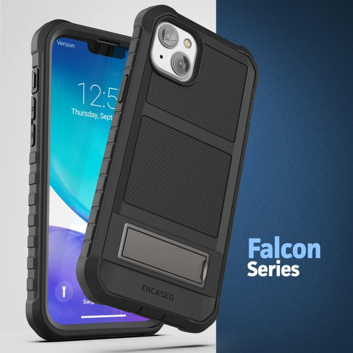 Encased Falcon Shield Case iPhone 14 Pro - Black provides full-body protection with excellent durability, a shock resistant bumper and reinforced corner guards.