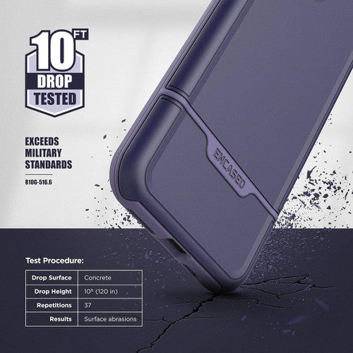 Engineered to protect when you need it most. Encased Rebel Case iPhone 15 Pro - Purple is designed to exceed tough military impact standards and has been 10FT impact tested to give you peace of mind. The fully bonded dual-layer construction provides maximum protection, while the ergonomic design ensures comfort and confidence in every grip. Enjoy seamless functionality with easy-to-press tactile buttons and hassle-free wireless charging compatibility.