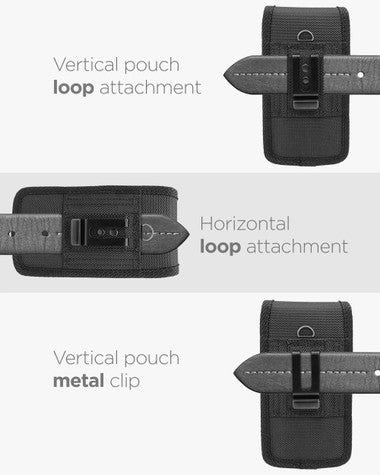 This convenient pouch is made of ultra durable 1680D ballistic nylon that will stand up to years of wear and tear, with a soft brushed-felt lining that treats your phone and screen to a safe, scratch-free enclosure. A metal belt clip + double canvas loops provide belt options for both vertical/horizontal use. An additional O-ring clip point is great for use with backpacks, bags and neck straps.