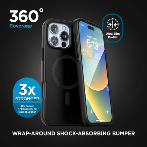 Where style meets protection. Encased Slimshield MagSafe Case iPhone 16 Pro Max with Belt Clip Holster - Black brings together a sleek minimalist design with dependable durability. The case fuses a robust PC backplate and flexible TPU edges to provide a comfortable grip while delivering a reliable defense against everyday knocks and drops, thanks to the shock-absorbing bumper that cushions against impacts. Rounding out the protection is a purpose-built raised edge, which shields the screen from direct impact in case of drops. The case’s slender profile maintains the phone’s sleek appearance, and is as functional as it is beautiful with an anti-slip surface that gives secure comfort in every grip.