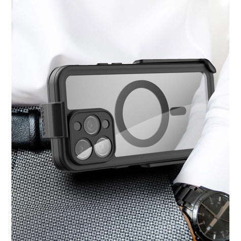 Built to survive any conditions. Elevate your phone’s defense with the fully submersible IP68-rated Titan Waterproof Phone Case for unparalleled protection against the elements. With a built-in screen protector, sealed port covers and a shock-resistant build, Encased Waterproof Case iPhone 15 Pro Max with Belt Clip Holster - Clear can withstand water, dirt, or mud and has been 15FT drop tested to provide you peace of mind when you need it most. Plus, enjoy the convenience of a belt clip holster and compatibility with MagSafe accessories. Rugged reliability meets modern functionality – the ultimate safeguard for your device.