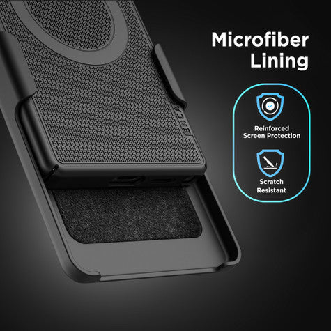 Encased Slimline Case Samsung Galaxy S25+ Plus with Belt Clip Holster - Black keeps your phone at your side, ensuring that your phone remains both secure and easily accessible. Crafted with precision, the slim case features a rubberized matte texture for a comfortable grip on your device. Raised edges and a fully enclosed design ensures your phone stays protected from accidental bumps.