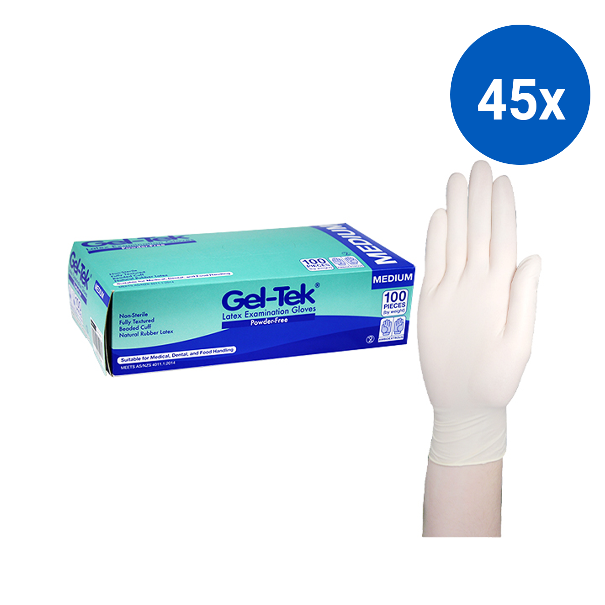 Geltek Latex Examination Gloves Powder Free AS/NZ Non-Sterile Medium 100/Box - Cream x45