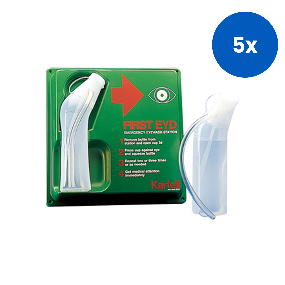 Kartell Personal Eyewash Station Wall Mount Design 30 x 30cm with 1 Bottle of 500ml Solution - Clear x5