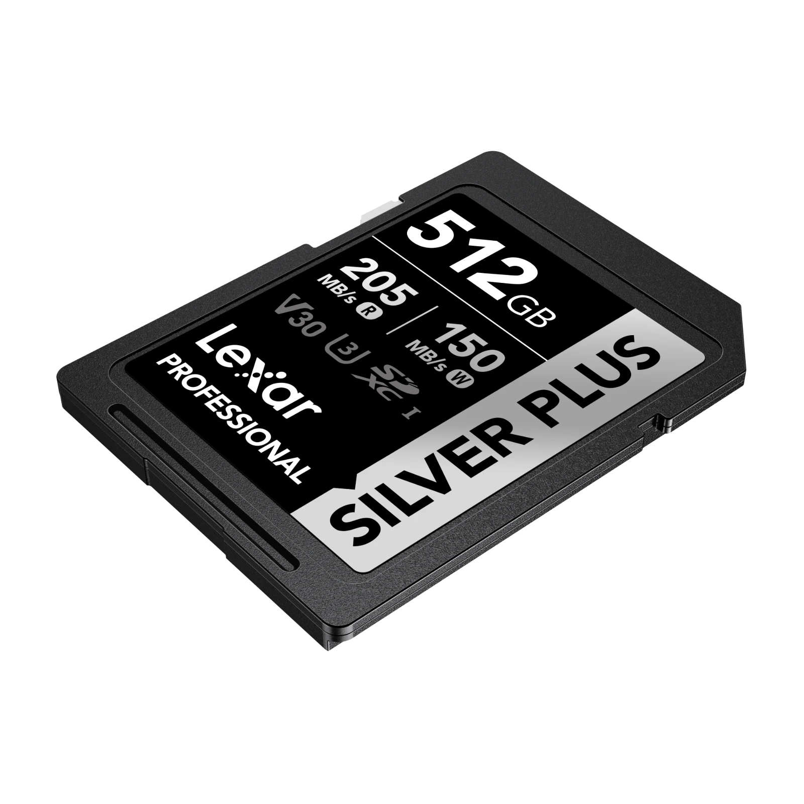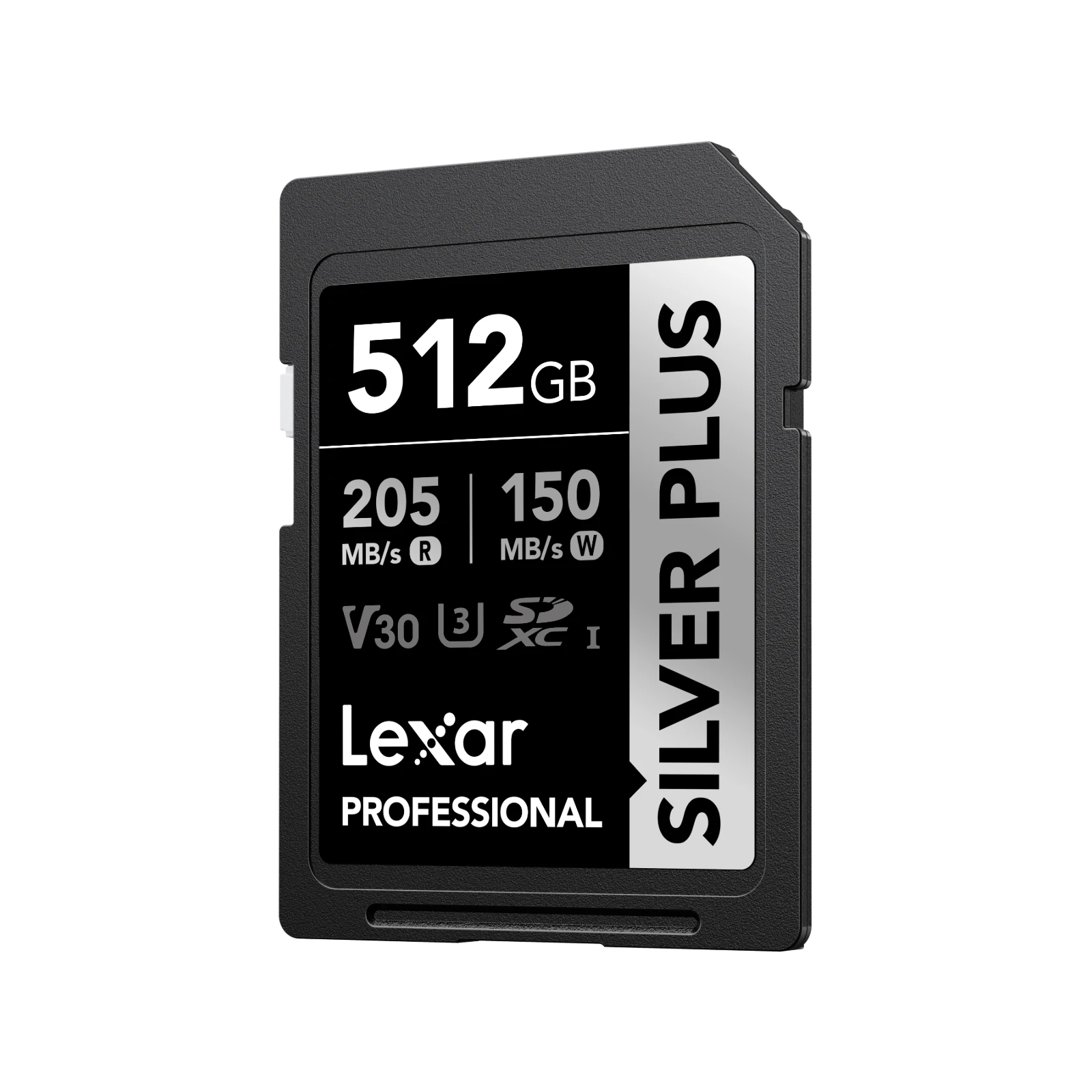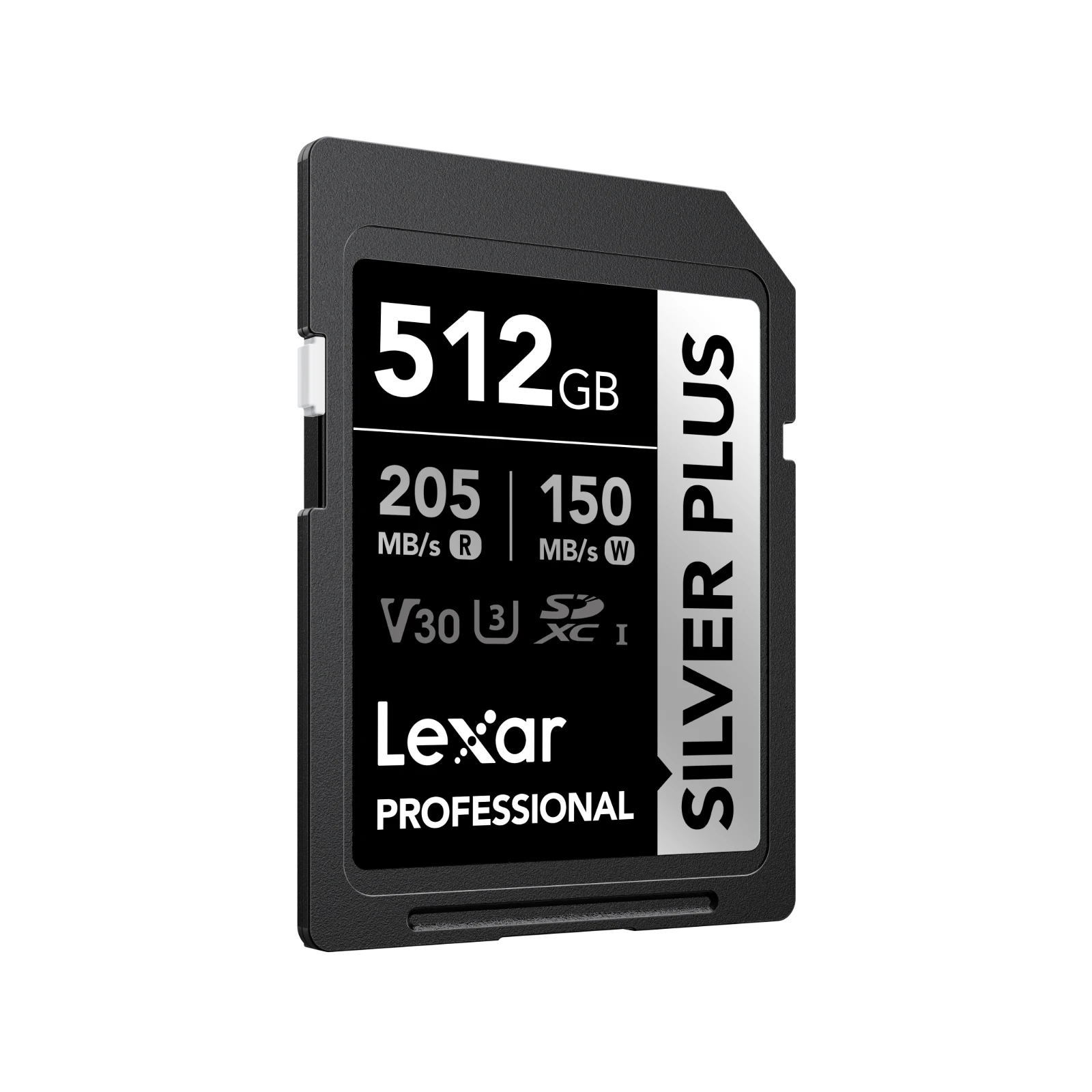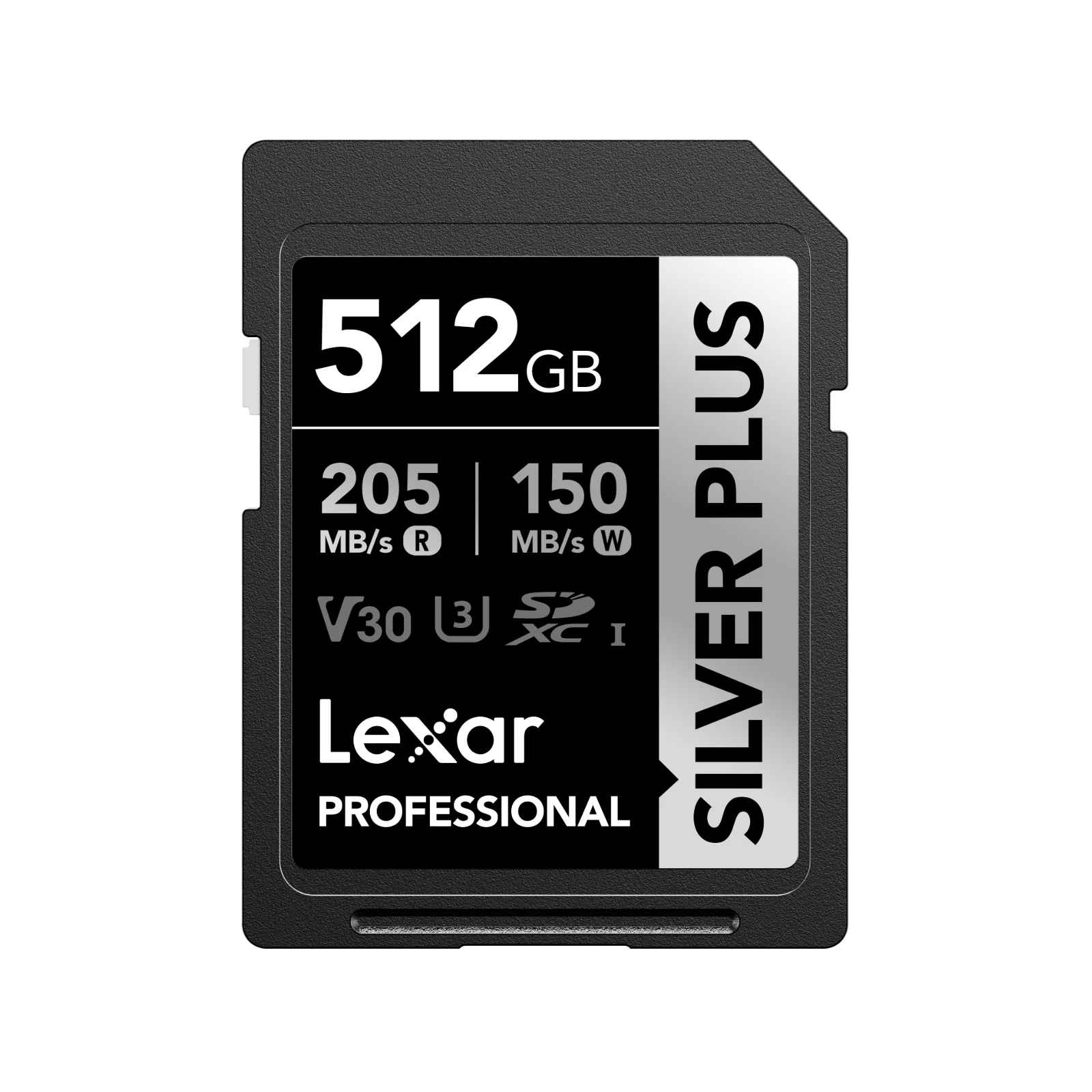 Lexar Professional SILVER PLUS 512GB SDXC™ UHS-I Card speeds of up to 205MB/s and 150MB/s and supports seamless recording of FULL-HD and 4K videos