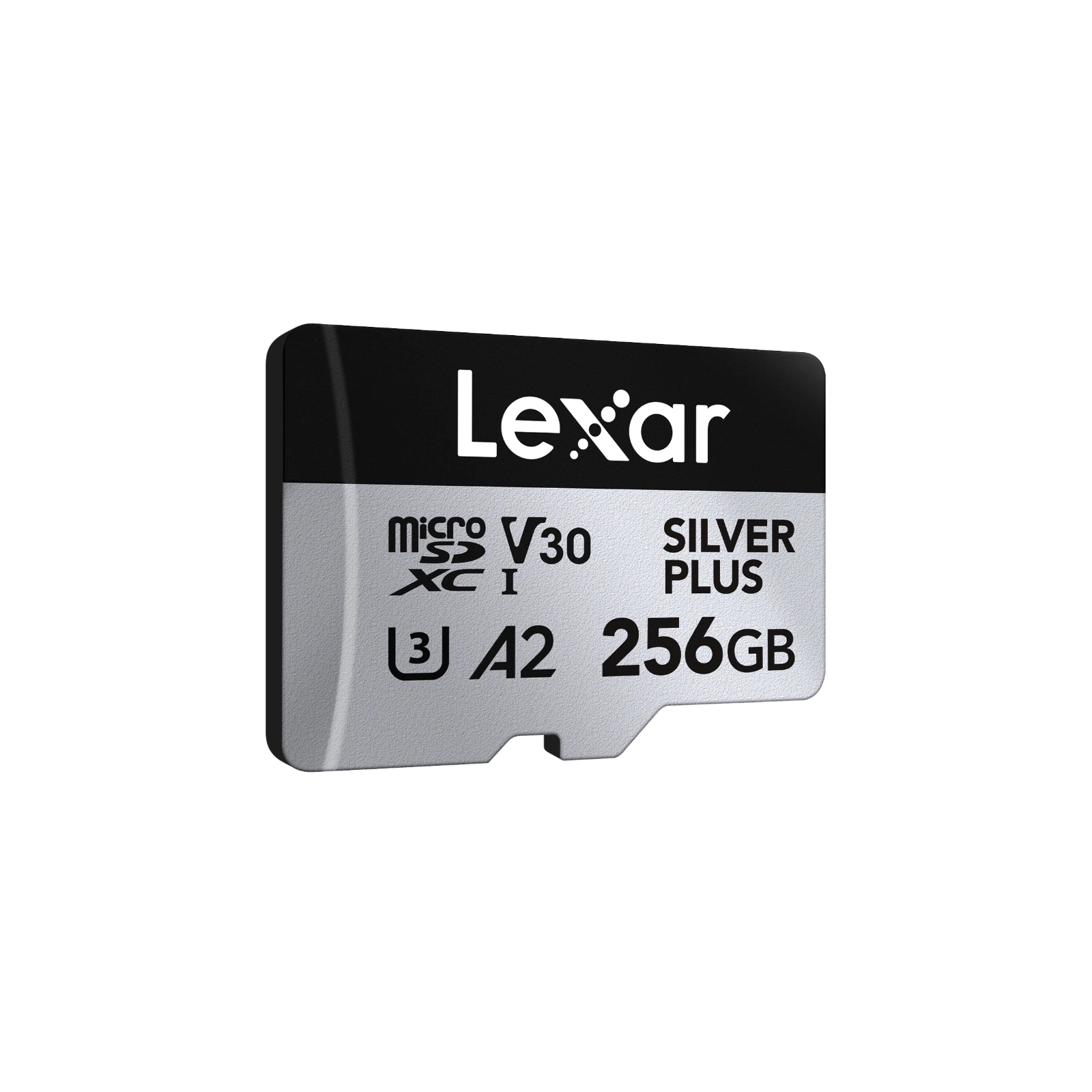 Lexar Professional Silver Plus V30 MicroSDXC UHS-I Card 256 GB up to205MB/s read, up to 150MB/s write.