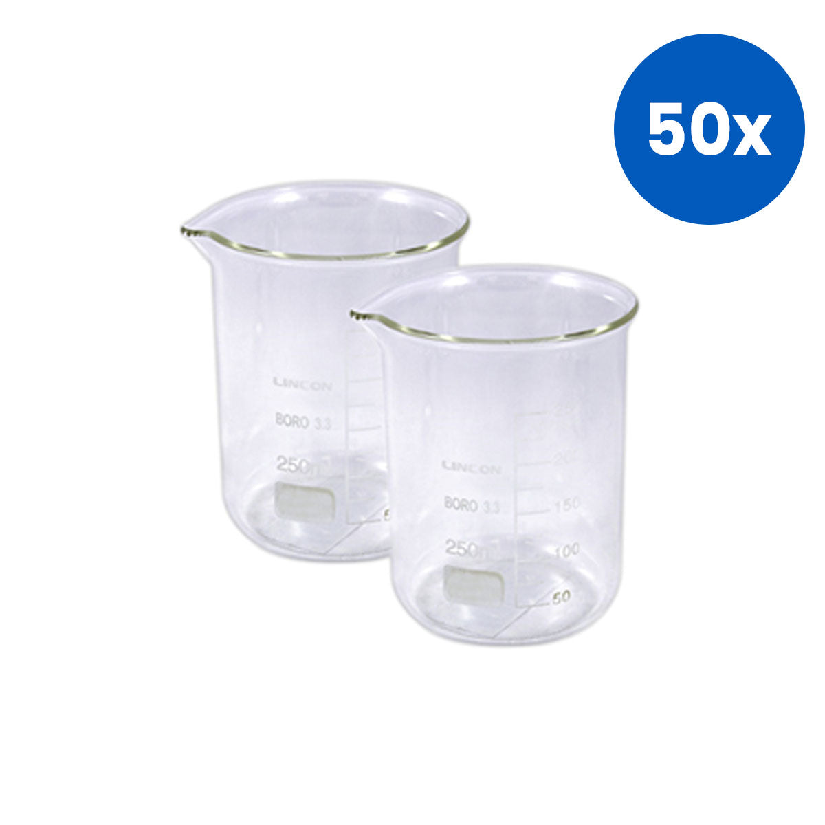 Lincon Beaker Graduated with Spout Borosilicate 3.3 Glass 250ml 2/Box - Clear x50