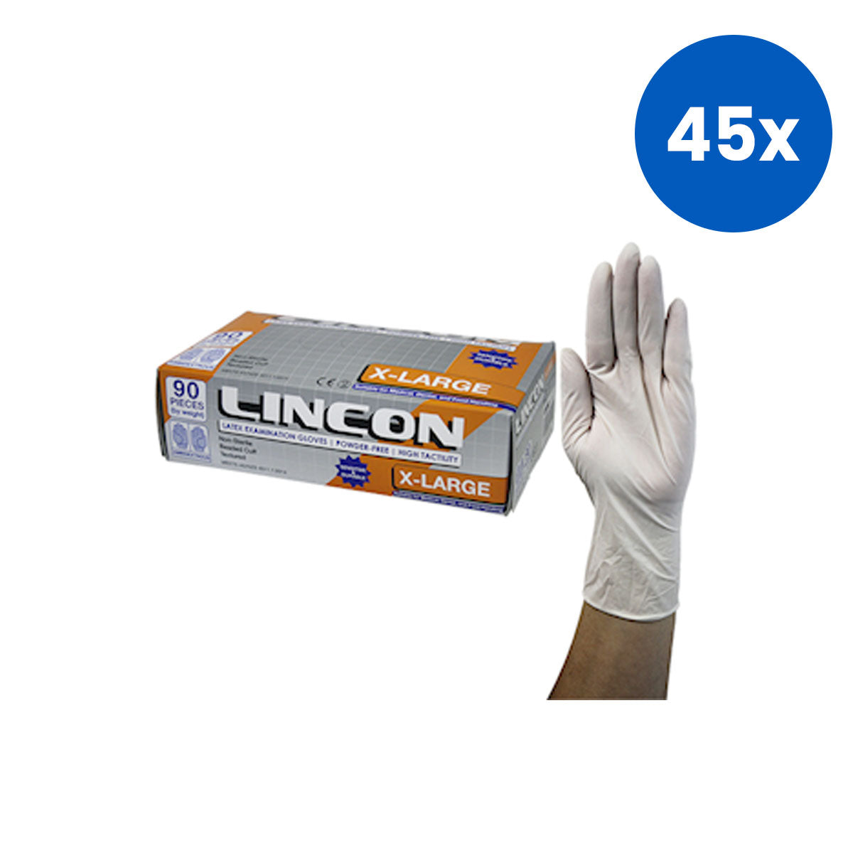 Lincon Biodegradable Latex Examination Gloves Powder Free Extra Large Size 90/Box - Cream x45
