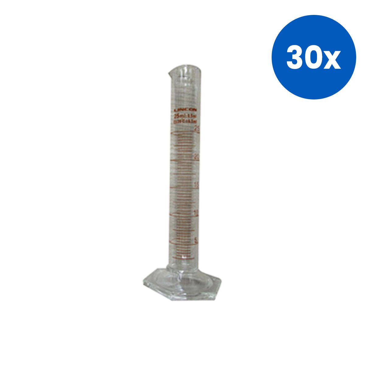 Lincon Measuring Cylinder with Hex Base and Spout Class A 22 x 160(H) mm 25 mL 1/Box - Clear x30