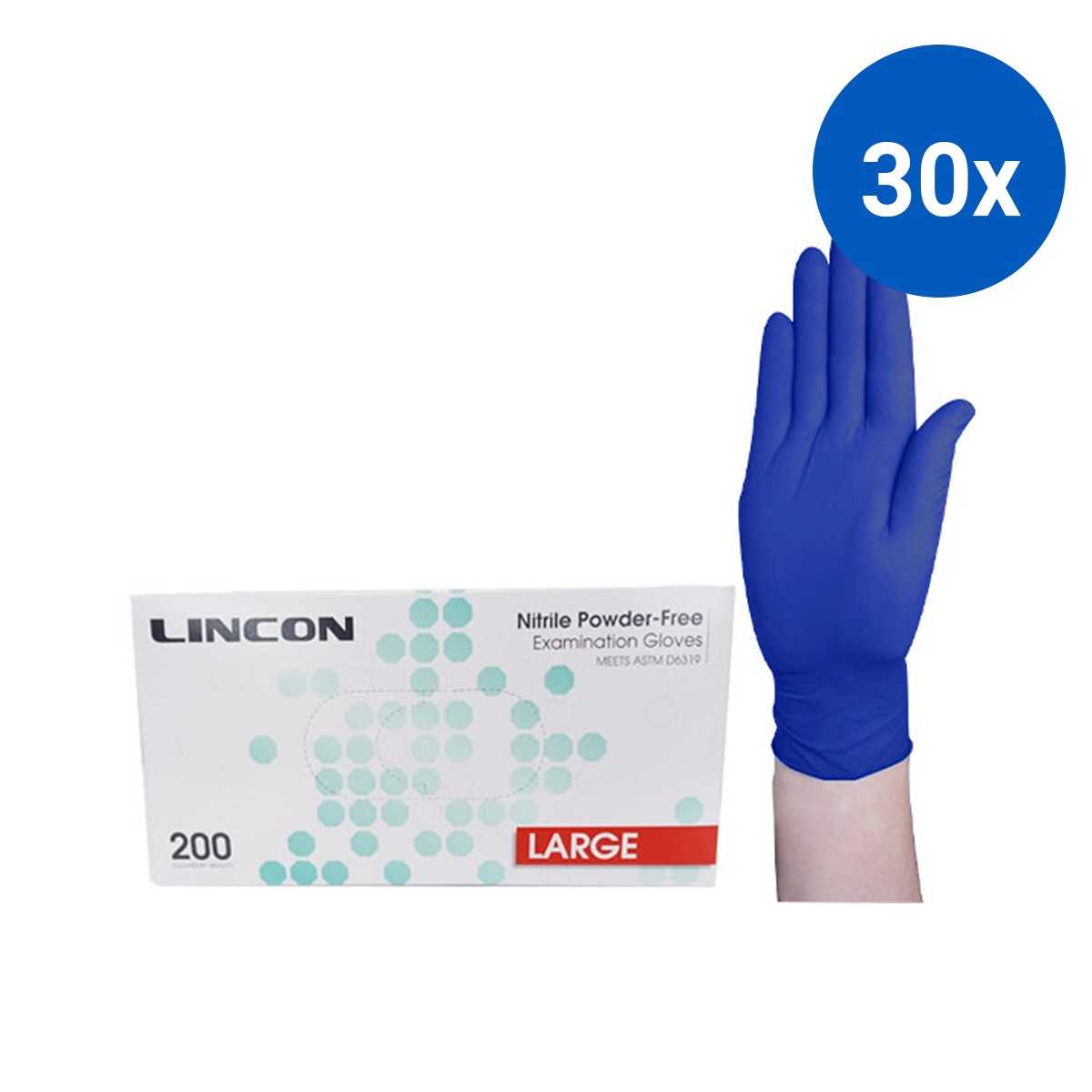 Lincon Nitrile Examination Gloves ASTM Powder Free EN374 Large HACCP 200/Box - Cobalt Blue x30