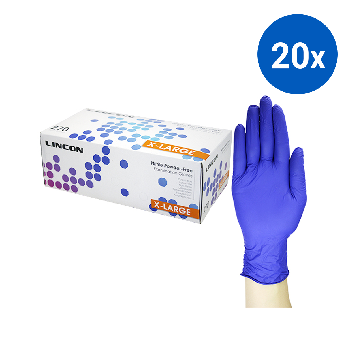 Lincon Nitrile Gloves Examination Powder Free Extra Large 270/Box - Cobalt Blue x20