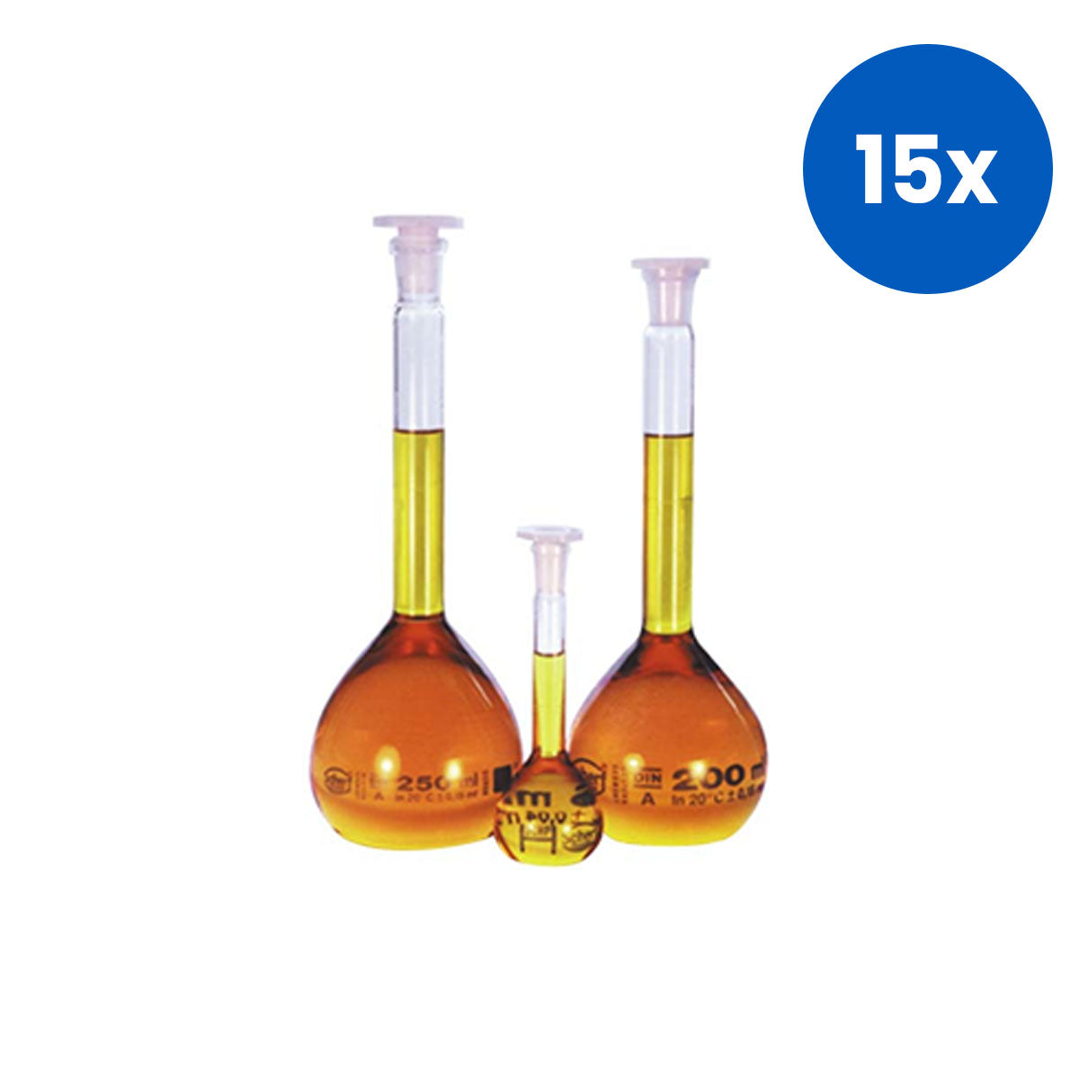 Lincon Volumetric Flask with Plastic Stopper Socket Joint 14/23 Class A Borosilicate Glass 200ml 1/Box - Clear x15