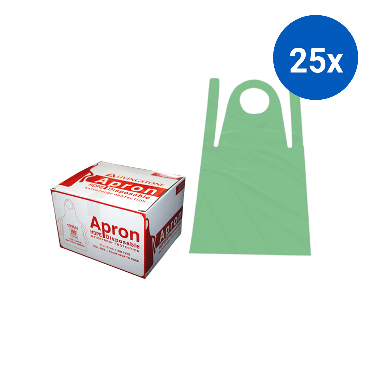 Liv Disposable Aprons Bib Type 23um 71 x 117cm HDPE 100/Box - Green x25