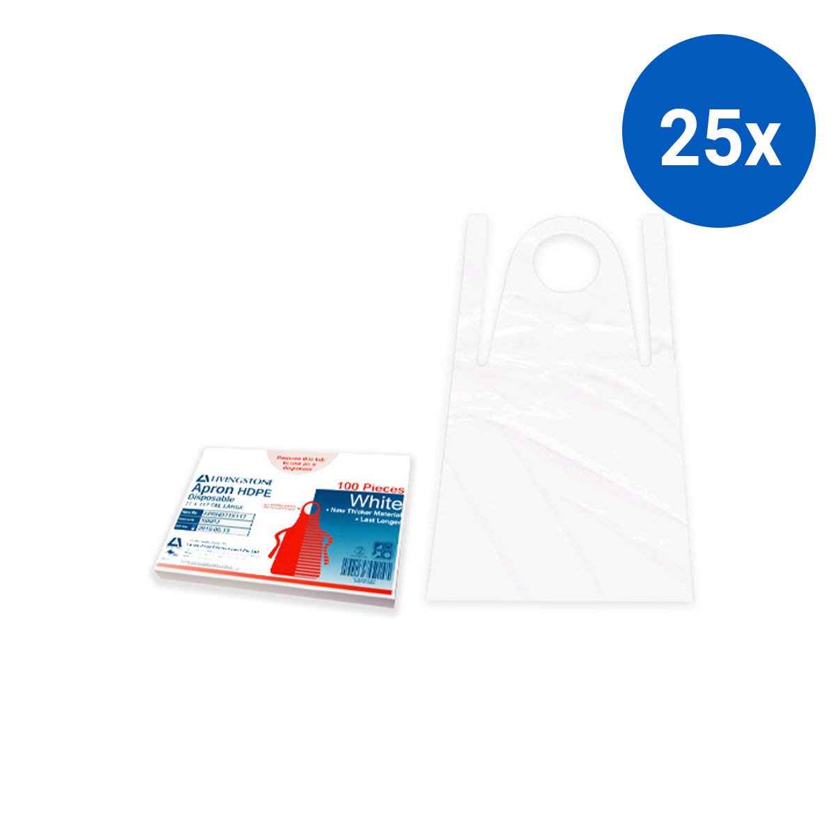 Liv Disposable Aprons Bib Type 23um 71 x 117cm HDPE HACCP 100/Box - White x25