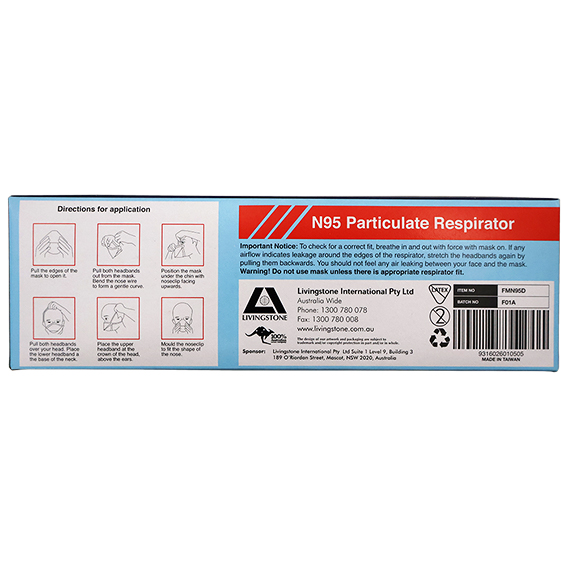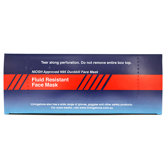 Livingstone N95 Respirator Masks are recommended for general protection. It is listed under TGA AUSTL No. 403955, and NIOSH 84A-4175, National Institute of Occupational Health, N95 standard is USA equivalent of the European P2 and P3 standard. Our masks are NIOSH approved and listed with TGA providing active protection through the Bacterial Filtration Efficiency (BFE) of 0.1 micron at over 95%. Filters out solid and liquid particles, excluding articles containing oils. Latex Free, will not cause any skin irritations. Mouldable nose piece for comfortable fit. The Duckbill design increases air flow for more comfortable breathing, and the polyurethane headbands allow for easy donning. Its BFE/PFE and Delta P have been fully tested by world renowned Nelson Laboratory in USA. Livingstone is probably the only Australian-owned company that undertakes expensive voluntary testing of compliance to AS4381, N95 and/or P2 for your protection and peace of mind.