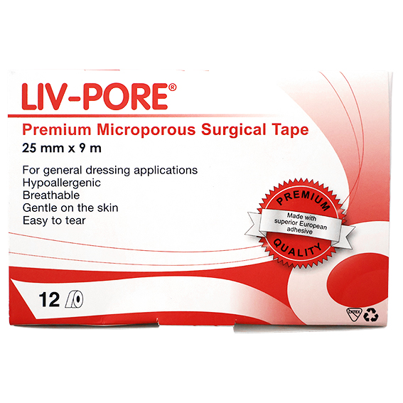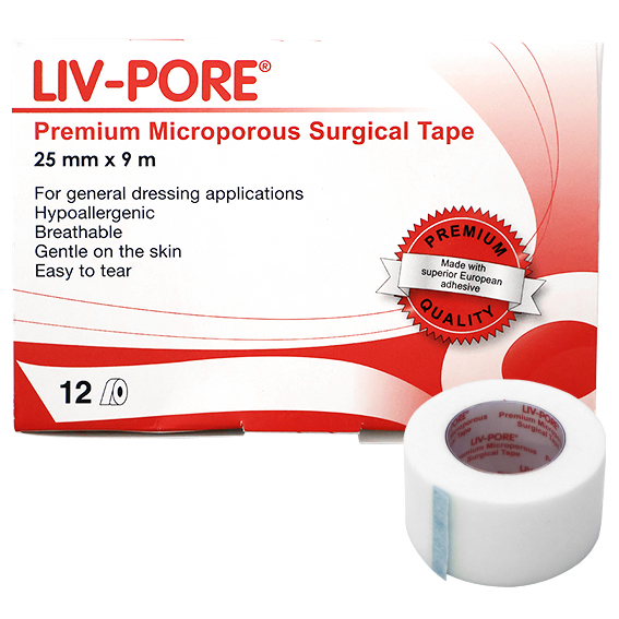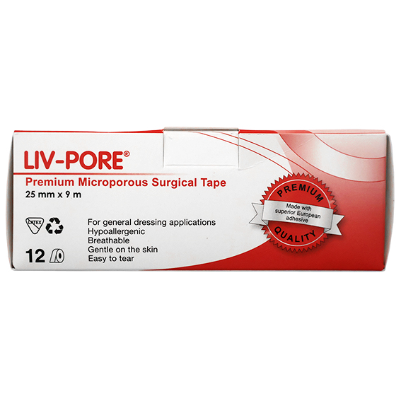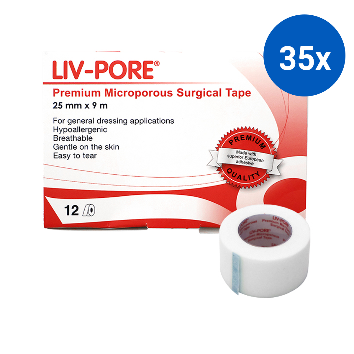Liv-Pore Premium Microporous Surgical Paper Tape Latex Free 25mm x 9m 12/Box - White x35