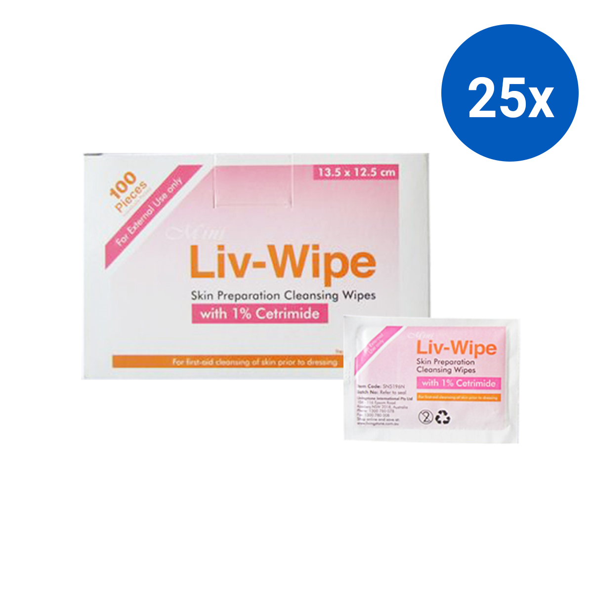Liv-Wipe Skin Prep Antiseptic Cleansing Wipe 1% Cetrimide 135x125mm 100/Box - Yellow x25
