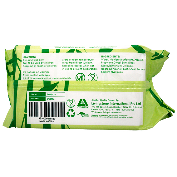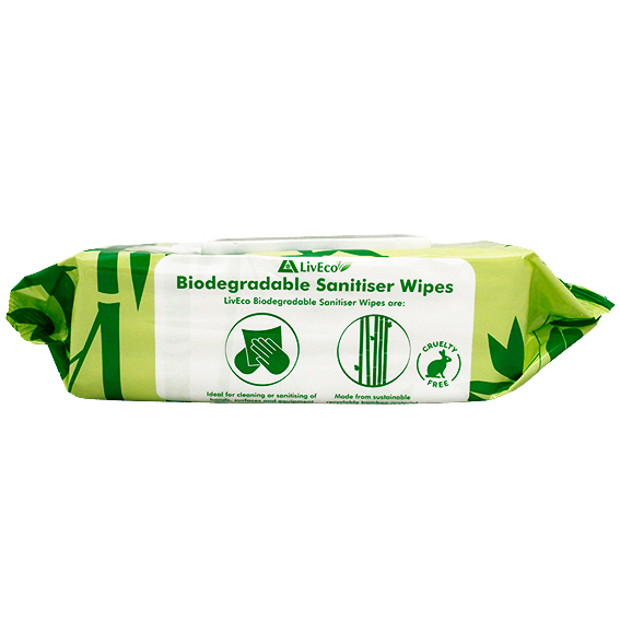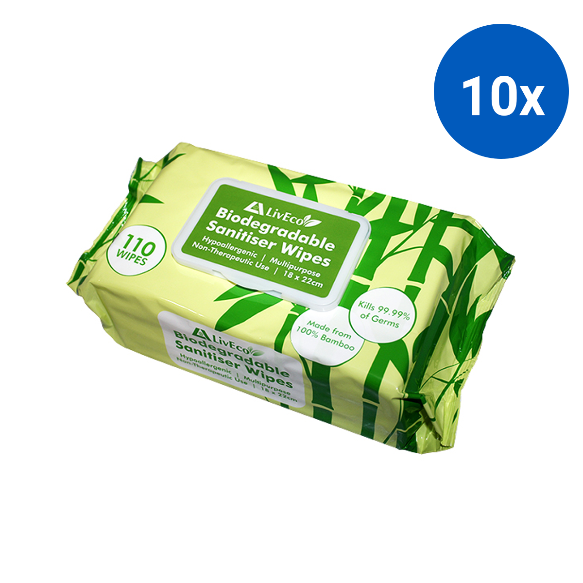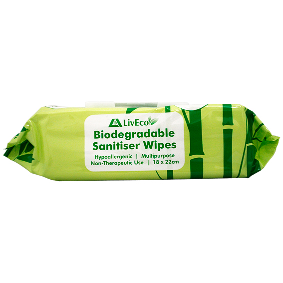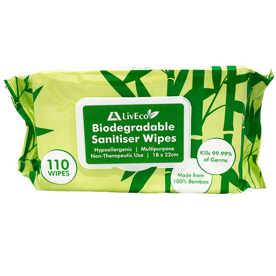 Liv Eco Multipurpose Biodegradable Compostable Sanitiser Wipes, 18 x 22cm, 45GSM, 100% Bamboo Cross, Nonwoven, 110 per Pack, 4 Packs per Box