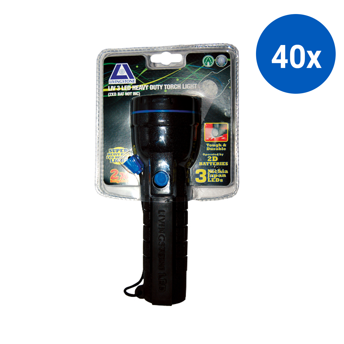 Livingstone 3 LED Heavy Duty Torch Light (2 D-size Battery Sold Separately) - Black x40