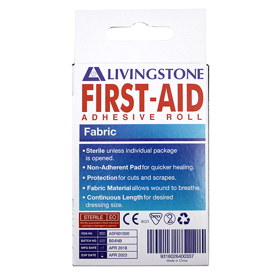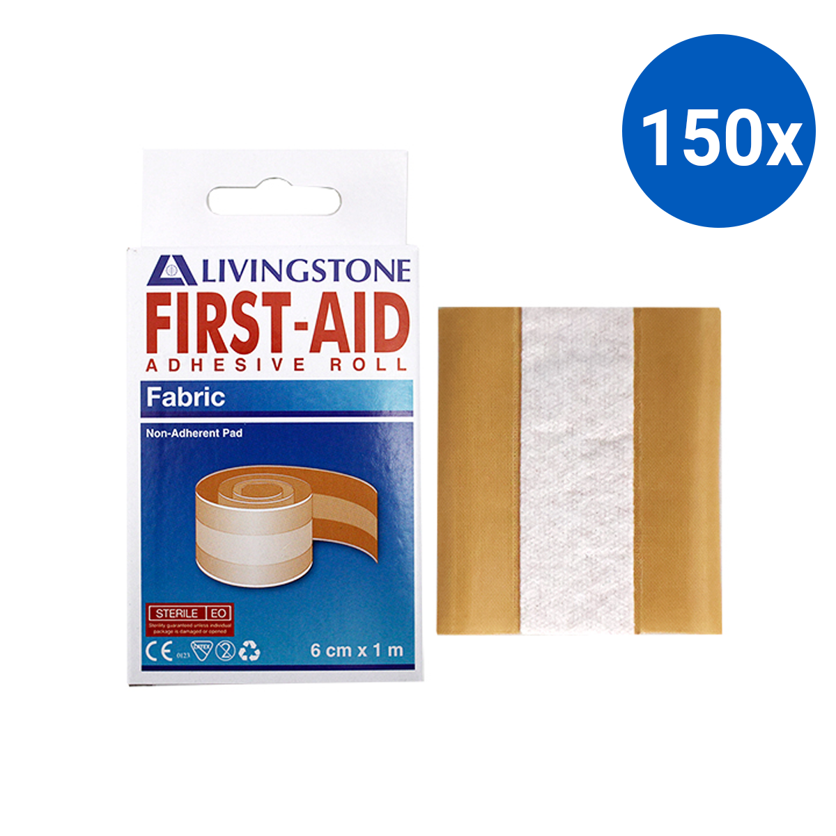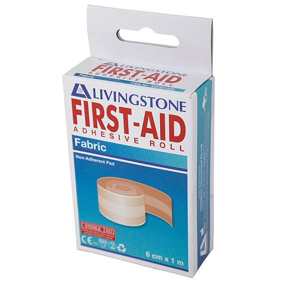 Livingstone Adhesive Fabric First Aid Roll with Pad 6cm x 1m Latex Free Sterile 1/Pack - Brown x150