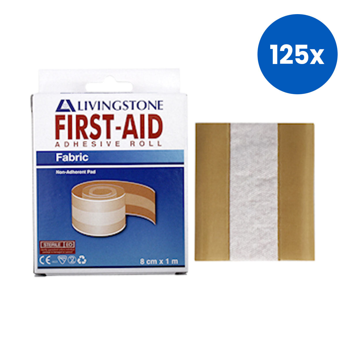 Livingstone Adhesive Fabric First Aid Roll with Pad 8cm x 1 Metre Latex Free 1/Pack - Brown x125