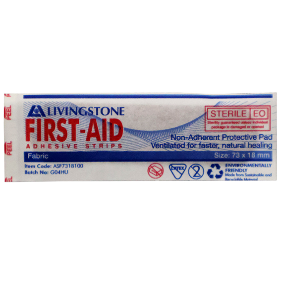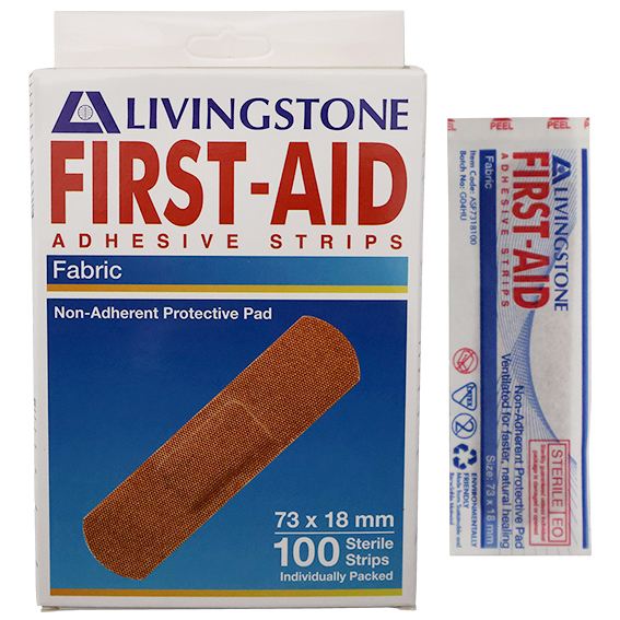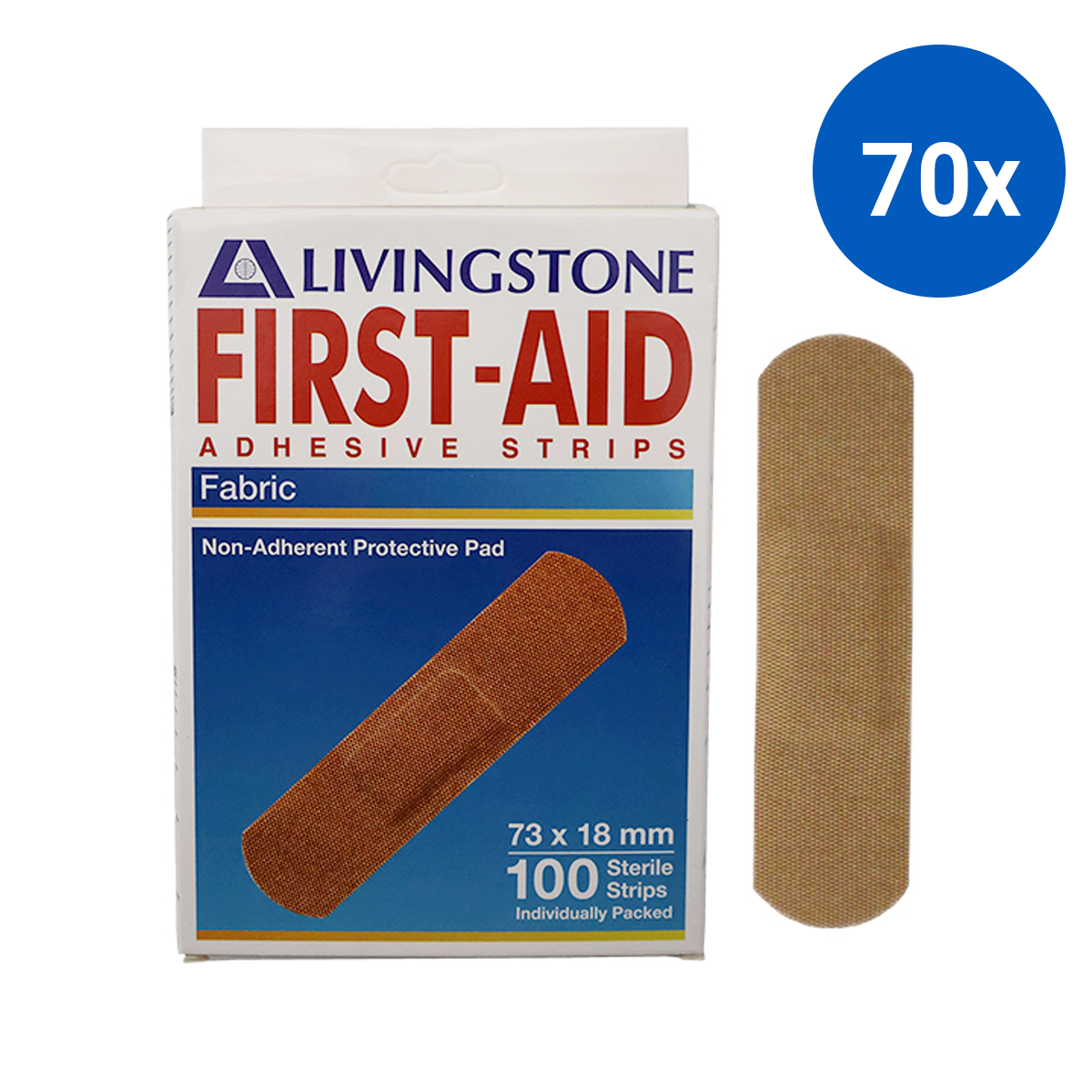 Livingstone Adhesive Fabric First Aid Strips with Pad 73 x 18mm Latex Free Sterile 100/Box - Brown x70