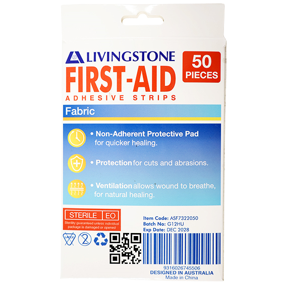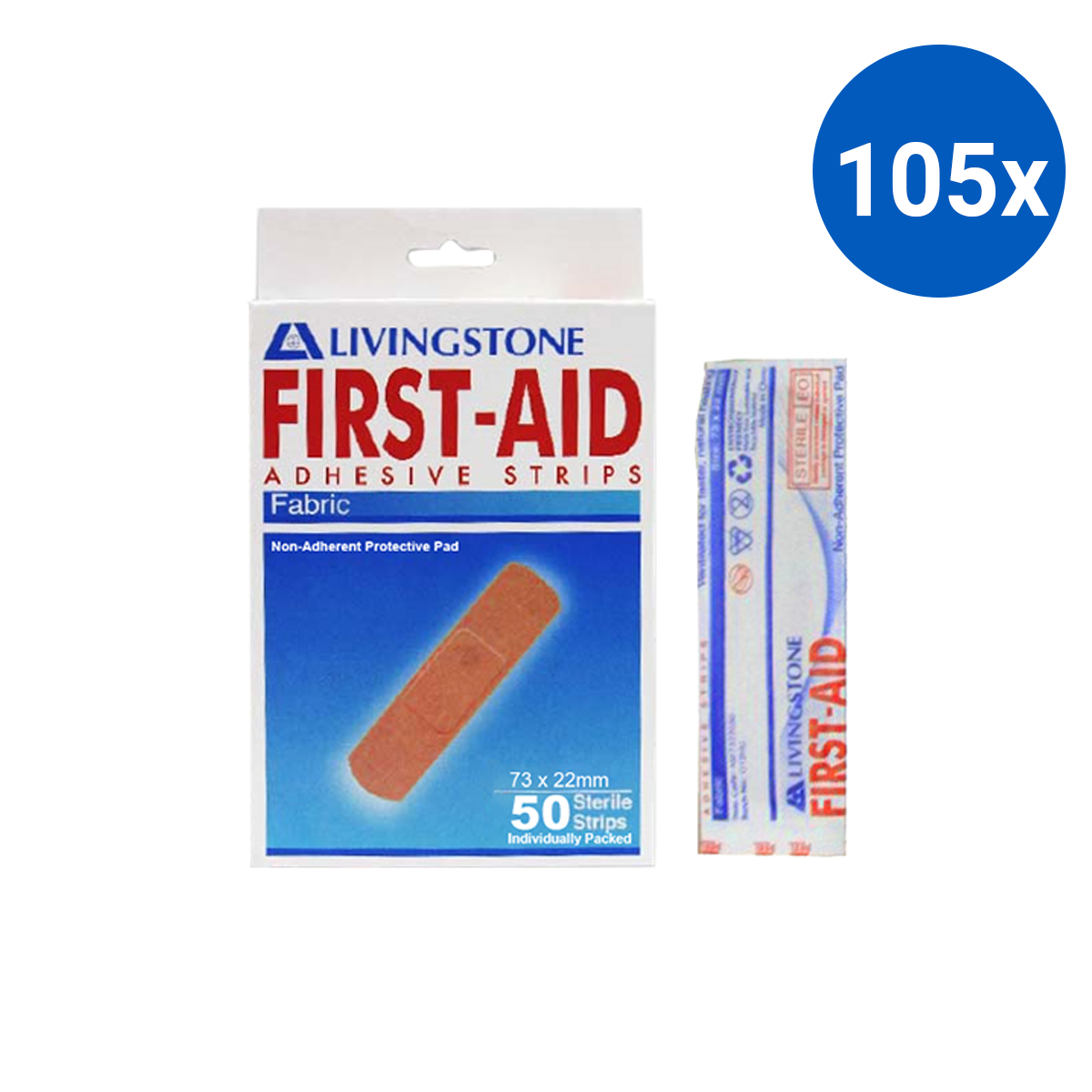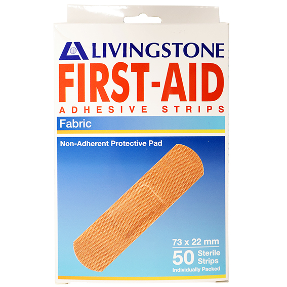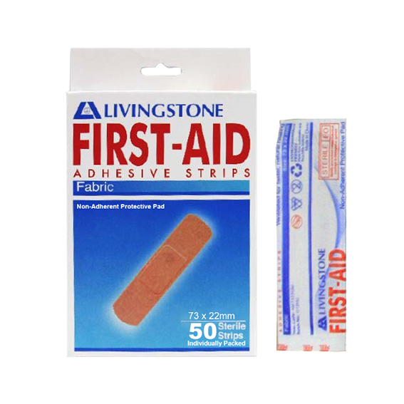 Livingstone Adhesive Fabric First Aid Strips with Pad 73 x 22mm Latex Free Sterile 50/Box - Brown x105
