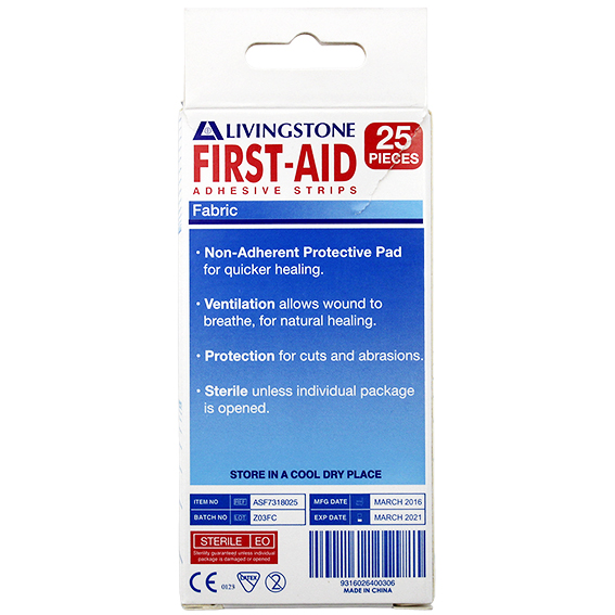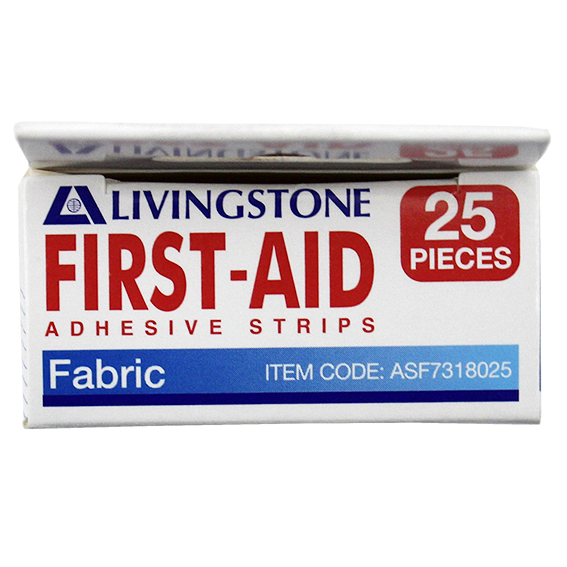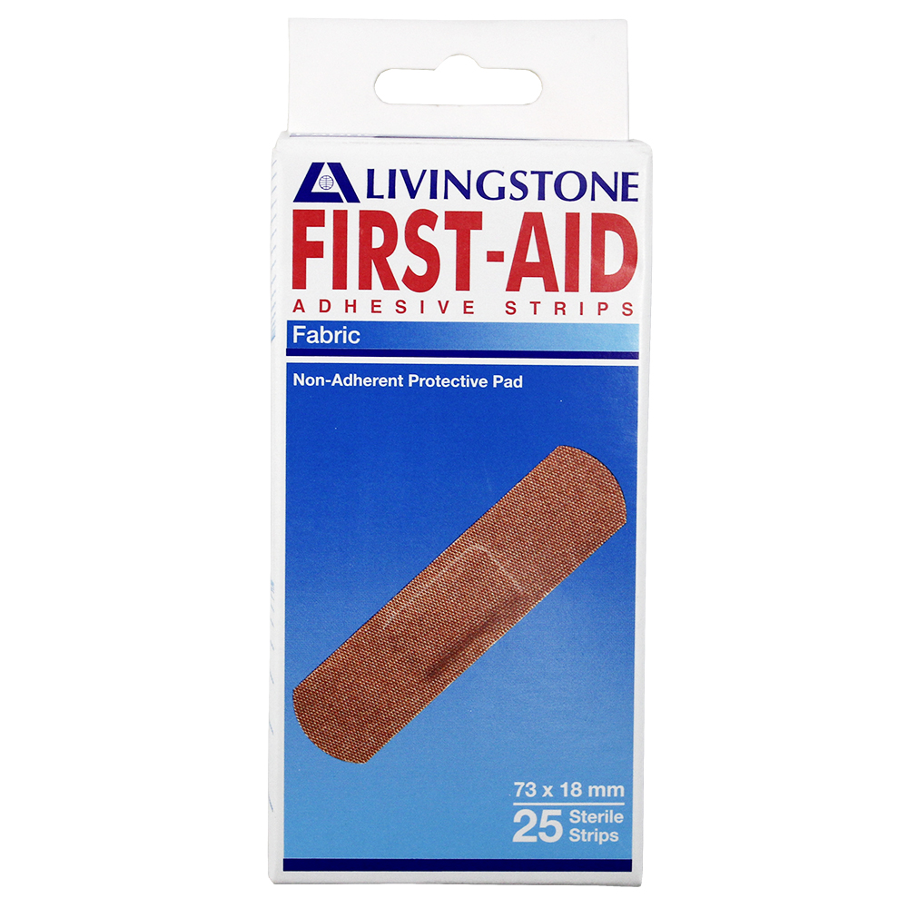 Livingstone Adhesive Fabric First Aid Strips with Pad Latex Free Sterile 73 x 18mm 25/Box - Brown x210