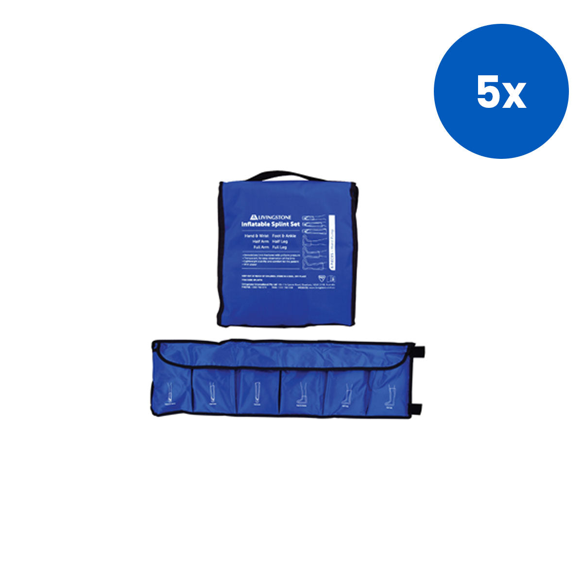 Livingstone Air Inflatable Splints Complete Set in Carry Case with Air Pump 6 Pieces/Set - Blue x5