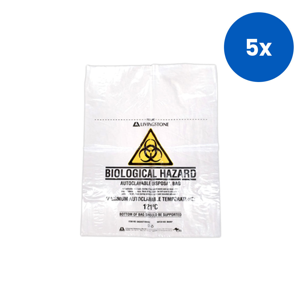 Livingstone Autoclavable Waste Bag Polypropylene 72 x 91cm 70 Litres 50 Microns Open Diameter 45cm 250/Carton - Clear x5