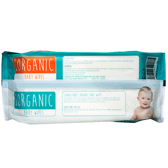 Livingstone Baby Wipes 100% Organic Biodegradable 19x21cm 80/Pack - White x95