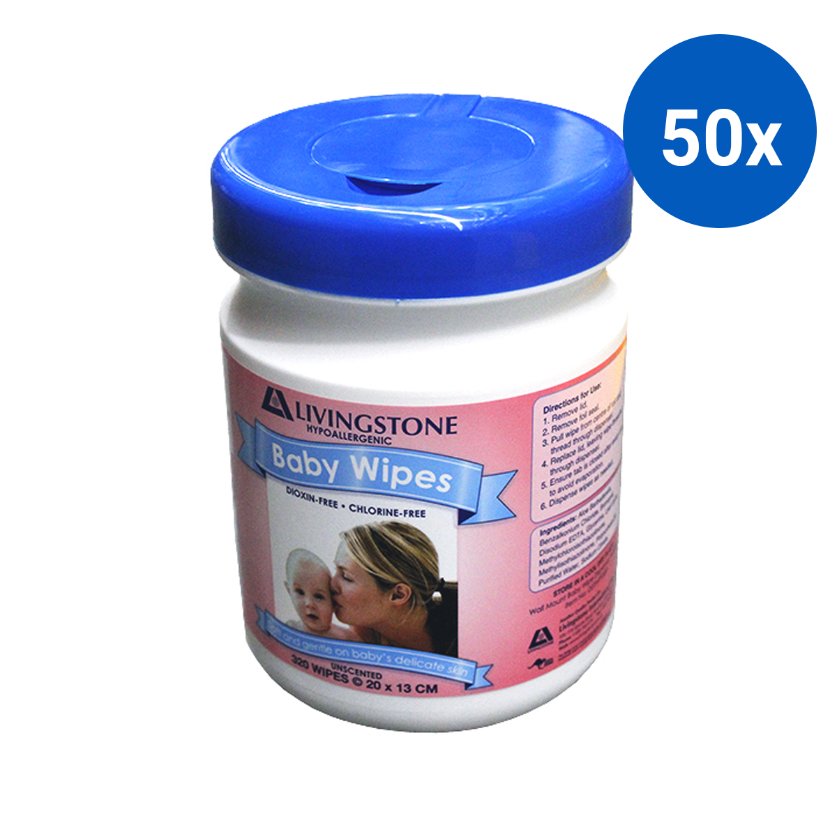 Livingstone Baby Wipes Mild Scent 20 x 13cm 320 wipes/Tub - White x50
