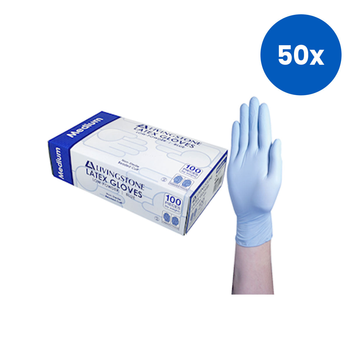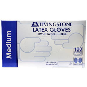 Livingstone Biodegradable Latex Examination Gloves ASTM Certified Low Powder Medium Size 100 Pieces/Box - Blue x15