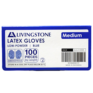 Livingstone Biodegradable Latex Examination Gloves are high-quality disposable gloves designed to balance exceptional protection, comfort, and environmental responsibility. Each glove is manufactured from durable latex material and features low powder content to reduce skin irritation and enhance tactile sensitivity during clinical procedures. With a snug medium size fit and beaded cuff for easy donning, these gloves offer ambidextrous wearability and are odourless for user comfort. Certified to ASTM standards and conforming to AS/NZS 4011:1997, they deliver reliable barrier protection while maintaining precise dexterity required in medical, dental, and laboratory settings. The blue color adds visibility for quick identification, and their biodegradable formulation supports eco-conscious operations. Supplied in boxes containing 100 pieces, this pack of 15 is ideal for high-volume use in healthcare institutions, aged care, and outpatient clinics.