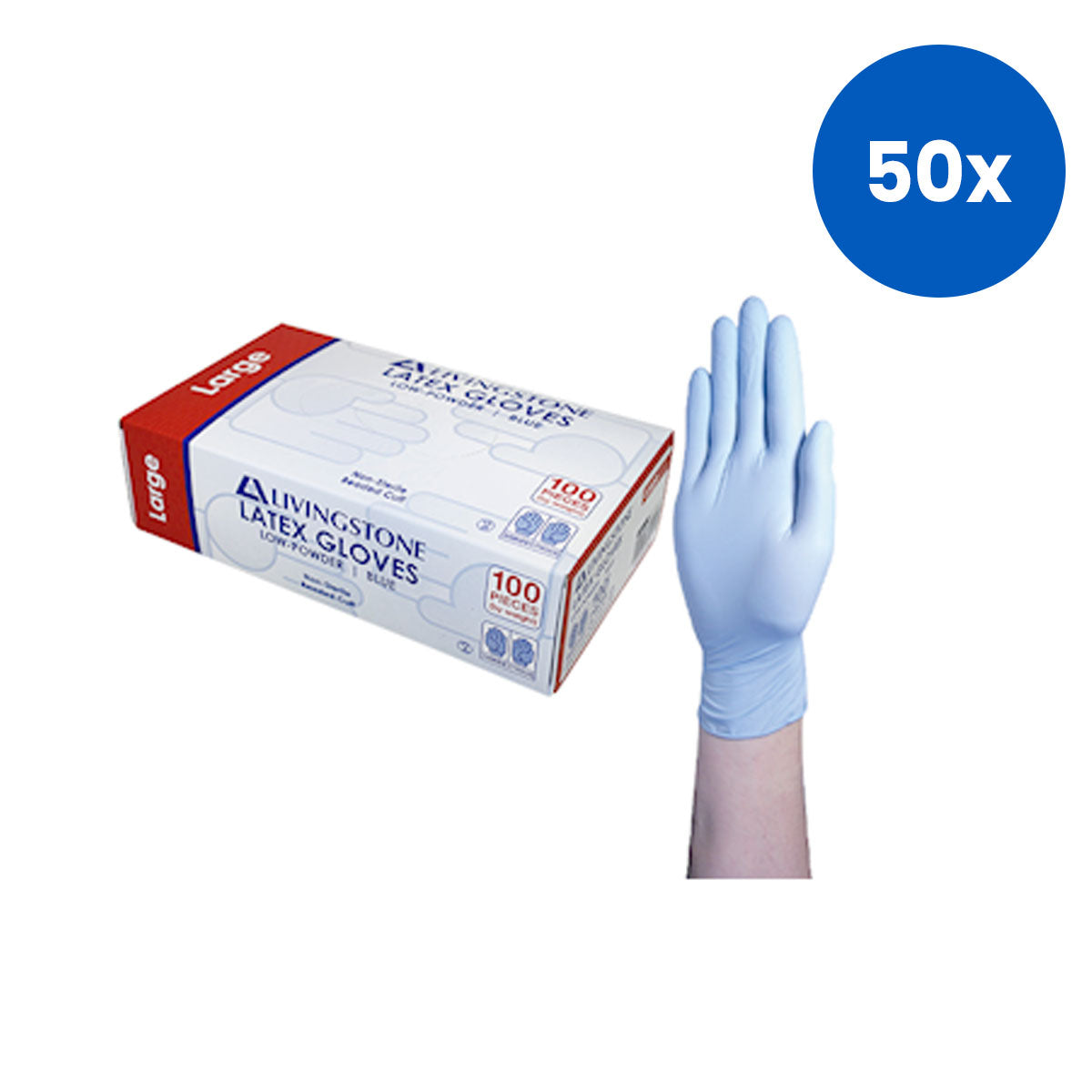 Livingstone Biodegradable Latex Examination Gloves ASTM Low Powder 100/Box - Blue x50