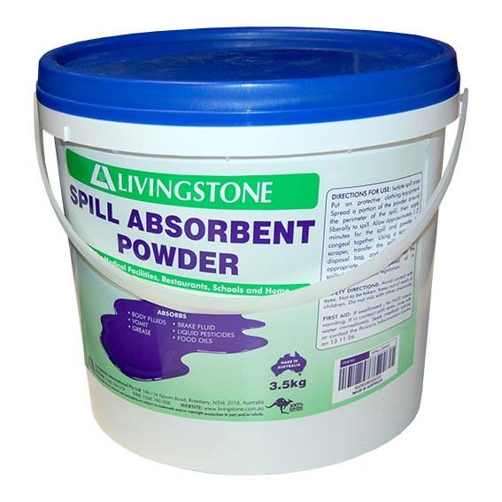 Livingstone absorbent powder effectively absorbs all kinds of contaminated/infectious waste, vomit, and other liquid spills. Available in pre-measured single-use packs or bottles for larger type of spills. Features: • Quickly absorbs liquids, reducing the risk of slips and falls • Effectively absorbs moisture and odours for easy and fast cleanup • Ideal for handling various spills, including grease, oil, water, and more • Made with naturally occurring mineral zeolite • Environmentally friendly and non-toxic.