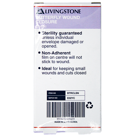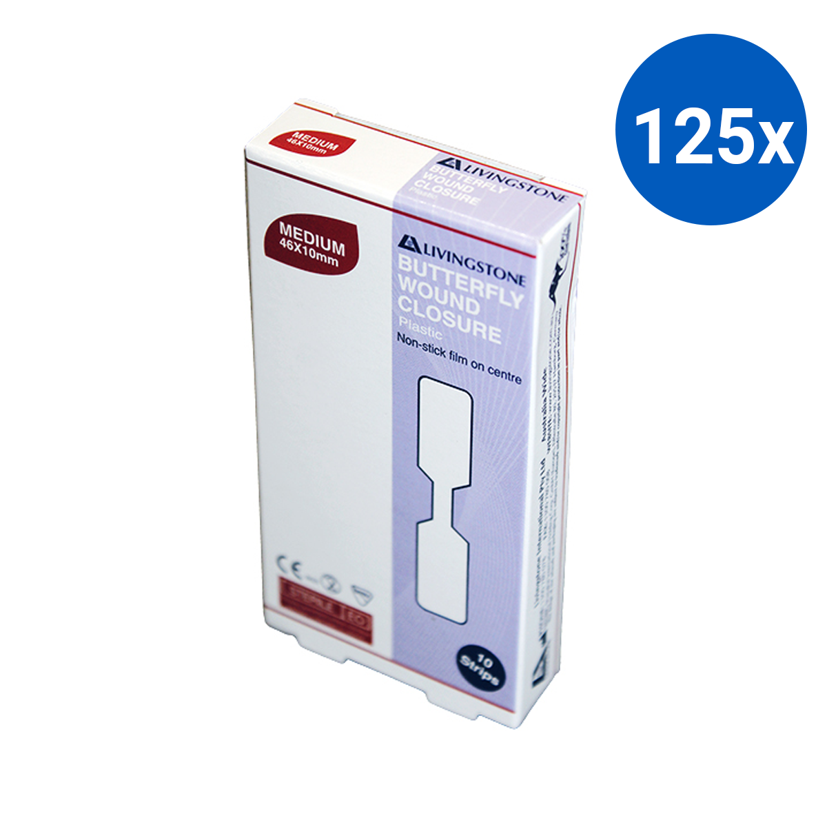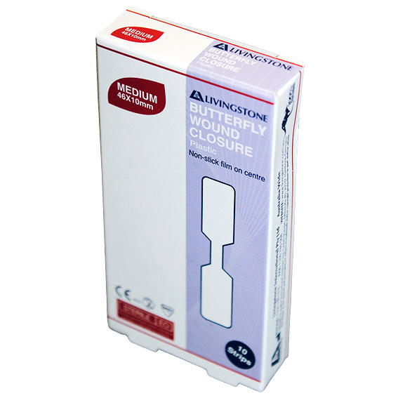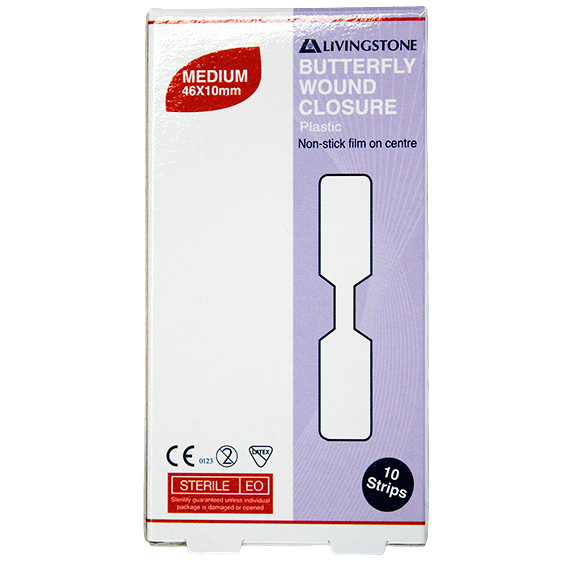 Livingstone Butterfly Wound Closure 46 x 10mm with Non-Stick Centre Sterile 10/Pack - White x125
